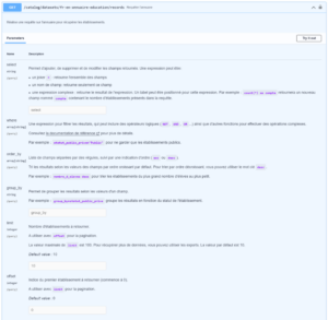 Vous pouvez effectuer quelques tests pour prendre en main l’API ici: https://api.gouv.fr/documentation/api-annuaire-education.