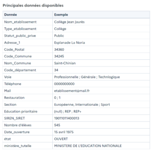 Nous utiliserons l’API annuaire éducation: https://api.gouv.fr/les-api/api-annuaire-education